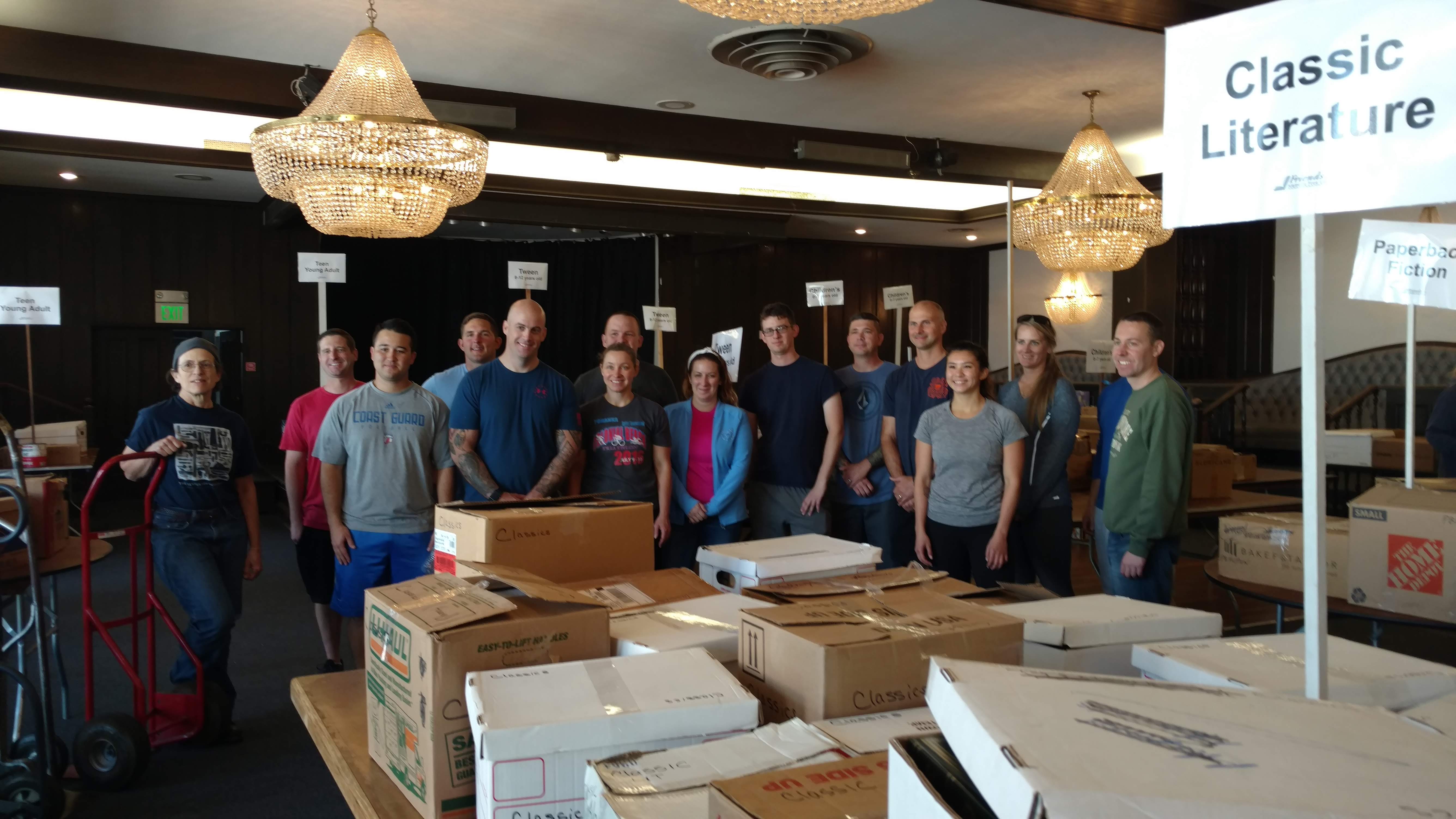 Coast Guard members posted at nearby Coast Guard Island, many of whom live in Alameda, have been a huge help to FAL's twice-a-year used book sales, lending muscle and time to move thousands of boxes of books.