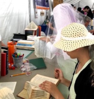Alameda’s Mini Maker Faire was a huge success, and many faire goers joined the Friends in repurposing old books. People stopped by the FAL booth to fold pages into envelopes or paper sculptures, select words and pictures from book pages to make buttons, and take home old books and instructions to make other creative objects. FAL board members, kids and adults all enjoyed the creative process.
