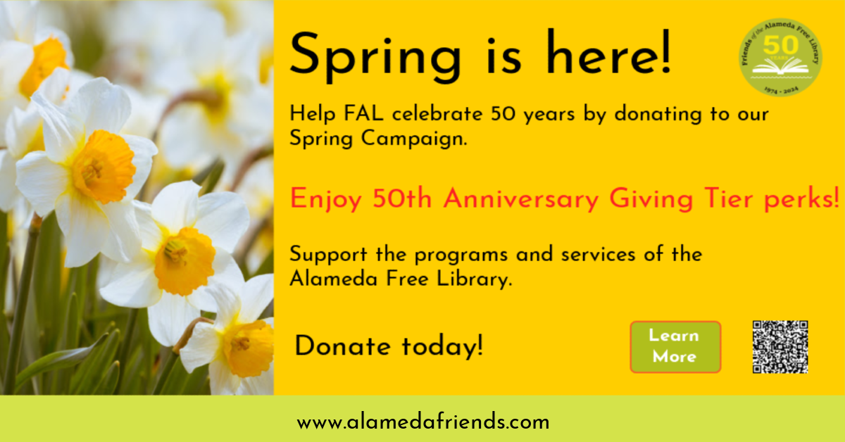 Many of you have stepped up to donate and are enjoying our special 50th Anniversary Giving Tier perks: year-long special benefits like Books for Friends discounts, free drinks and treats from the Friends Café, and more—our way of thanking you.